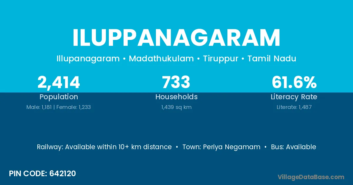 Iluppanagaram village has a total population of 2,414 people, of which 1,181 are males and 1,233 are females.
