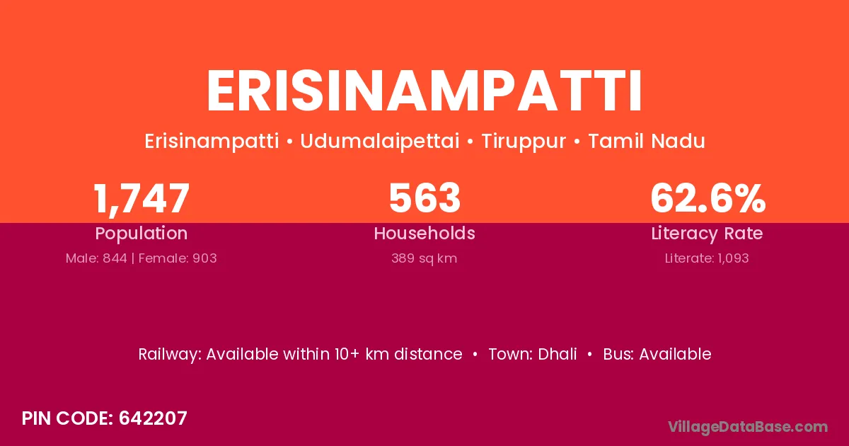 Erisinampatti village has a total population of 1,747 people, of which 844 are males and 903 are females.