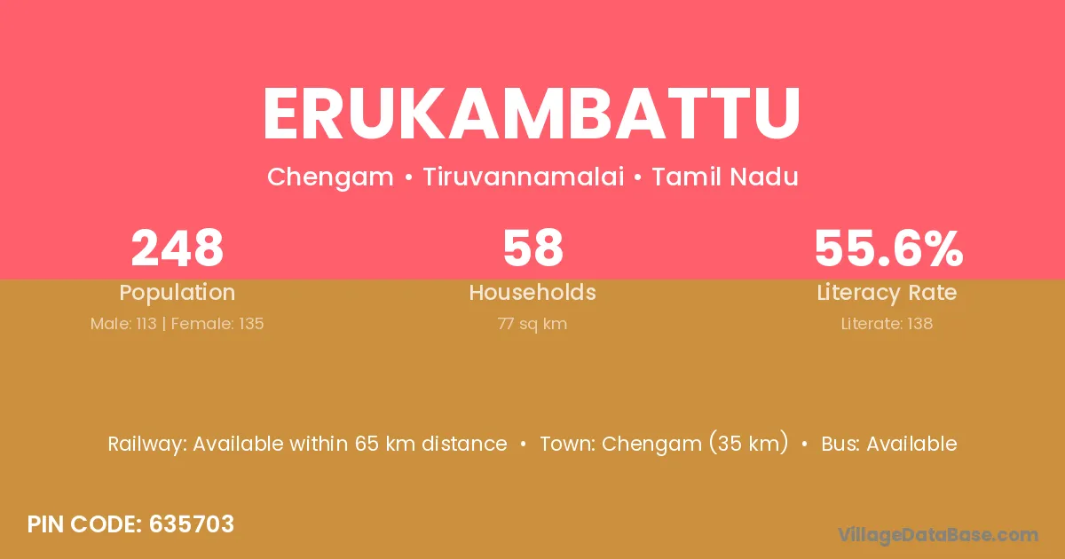 Erukambattu village has a total population of 248 people, of which 113 are males and 135 are females.