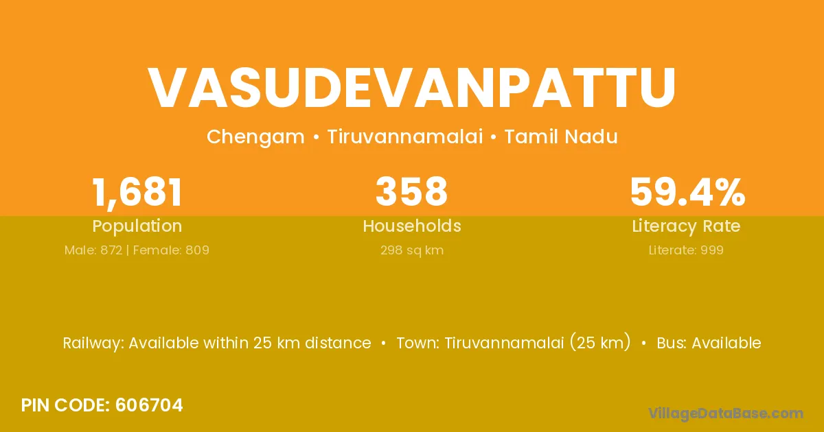 Vasudevanpattu village has a total population of 1,681 people, of which 872 are males and 809 are females.