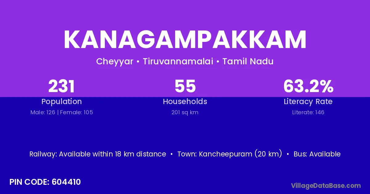 Kanagampakkam village has a total population of 231 people, of which 126 are males and 105 are females.
