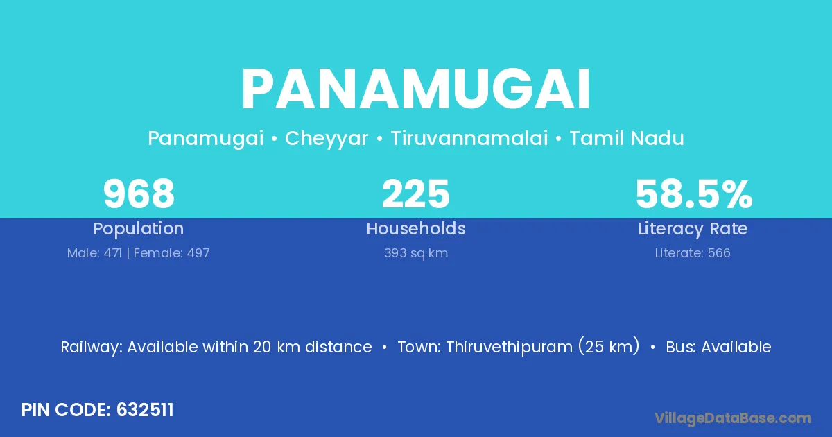 Thiruvethipuram (25 km) is the nearest town to Panamugai village for major economic activities and is located approximately 25 km away.