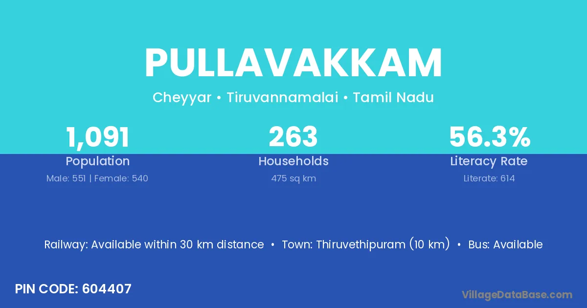 Pullavakkam village has a total population of 1,091 people, of which 551 are males and 540 are females.