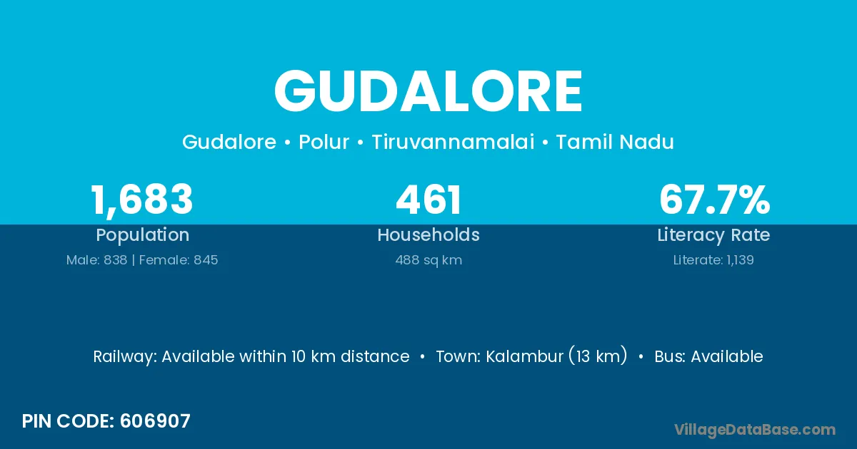 Gudalore village has a total population of 1,683 people, of which 838 are males and 845 are females.