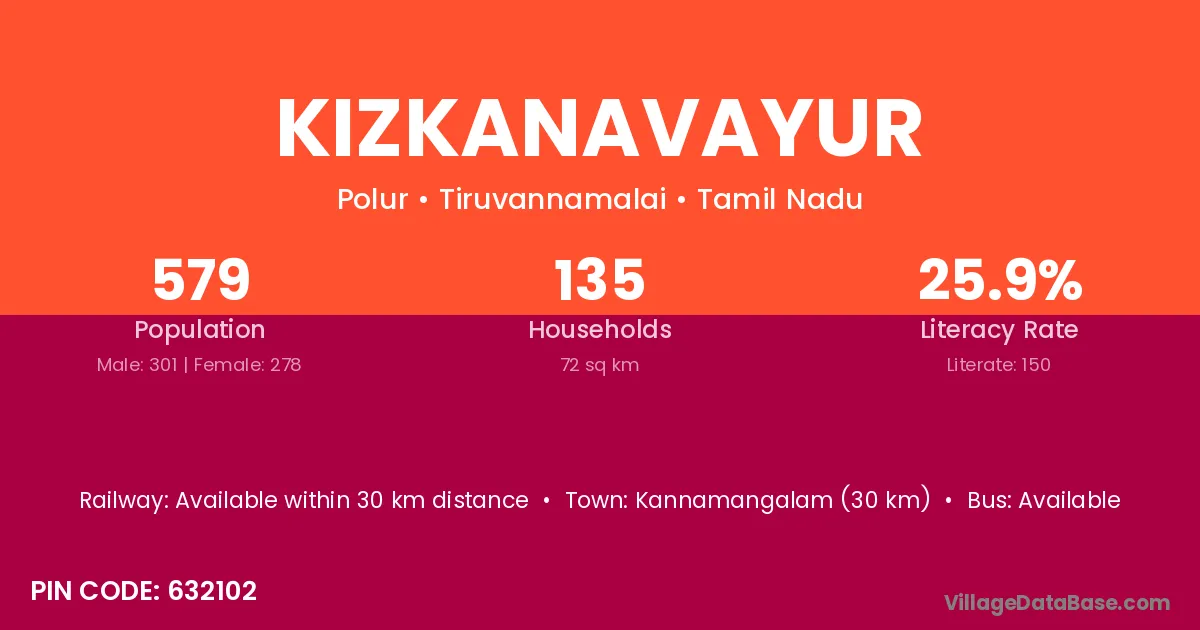 Kizkanavayur village has a total population of 579 people, of which 301 are males and 278 are females.