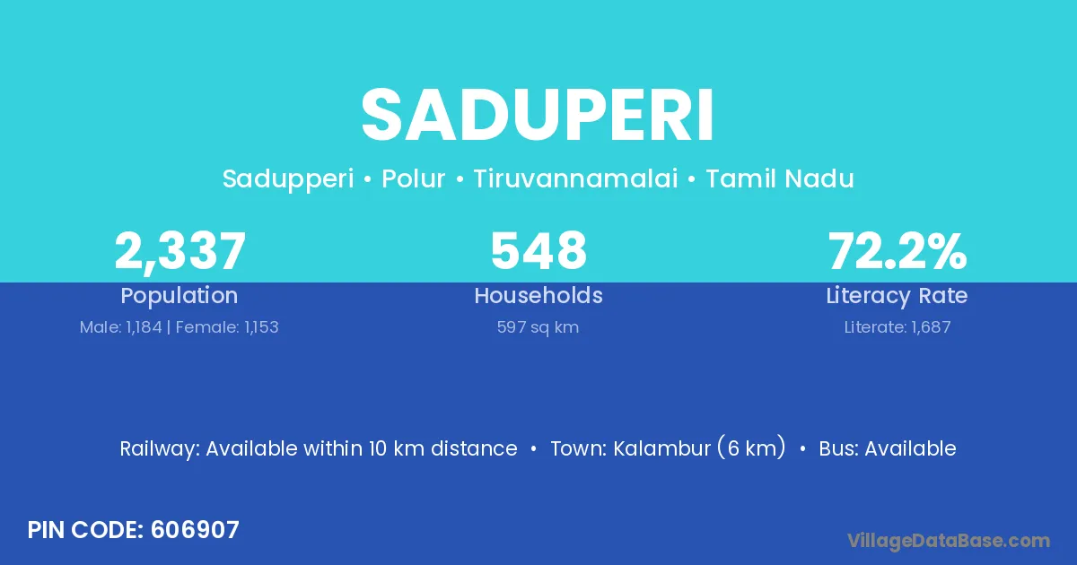 Kalambur (6 km) is the nearest town to Saduperi village for major economic activities and is located approximately 6 km away.