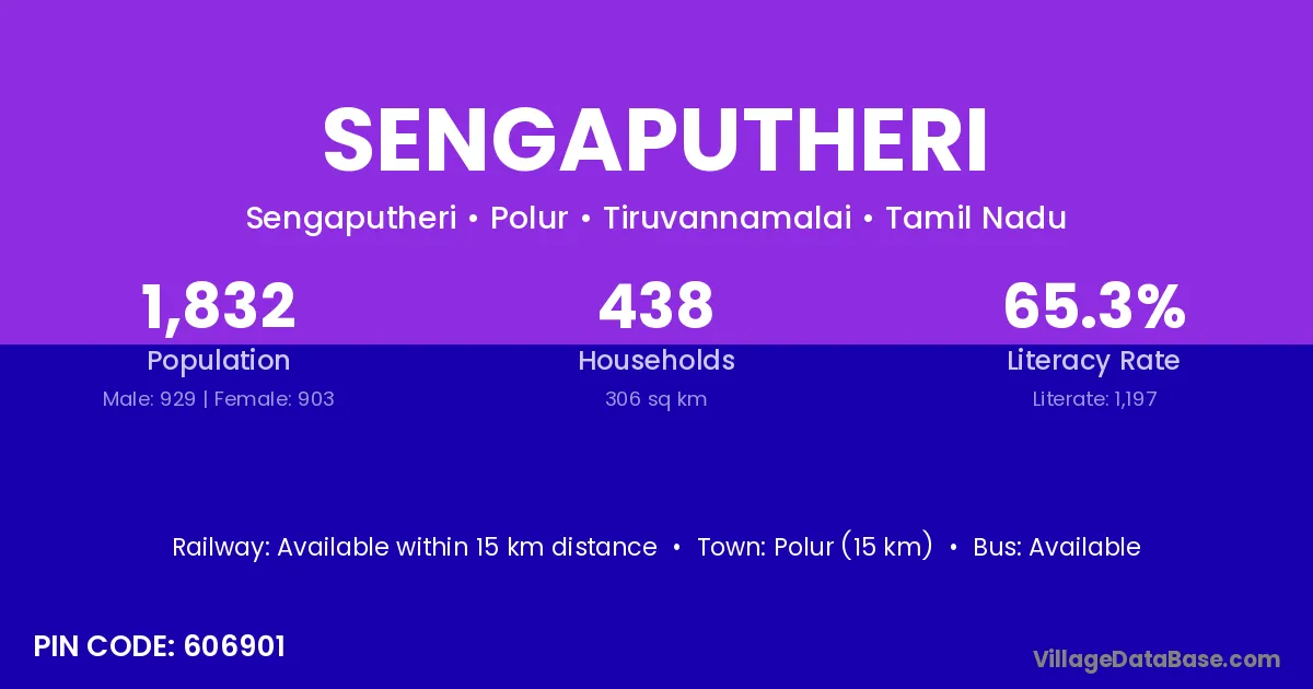 Polur (15 km) is the nearest town to Sengaputheri village for major economic activities and is located approximately 15 km away.