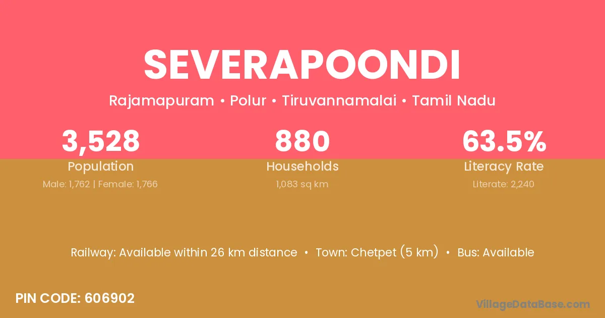 Chetpet (5 km) is the nearest town to Severapoondi village for major economic activities and is located approximately 5 km away.