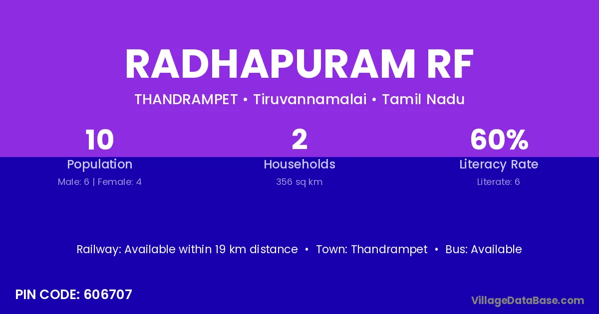 Radhapuram Rf village has a total population of 10 people, of which 6 are males and 4 are females.