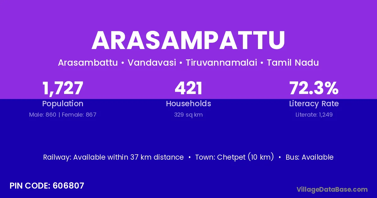 Chetpet (10 km) is the nearest town to Arasampattu village for major economic activities and is located approximately 10 km away.
