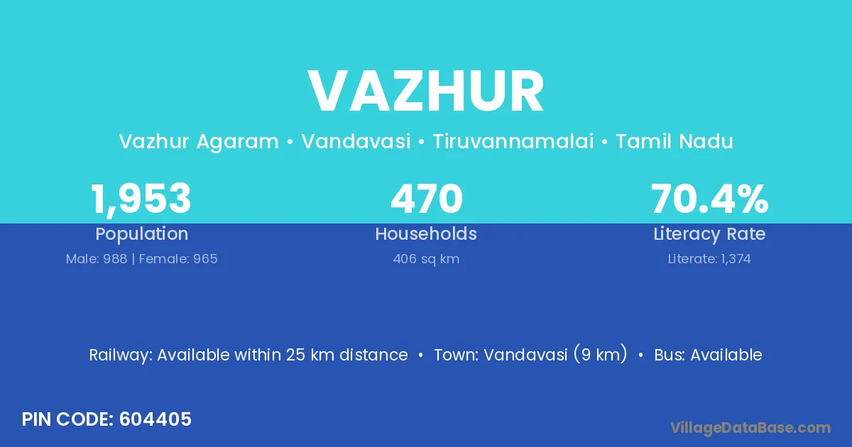 Vazhur village has a total population of 1,953 people, of which 988 are males and 965 are females.