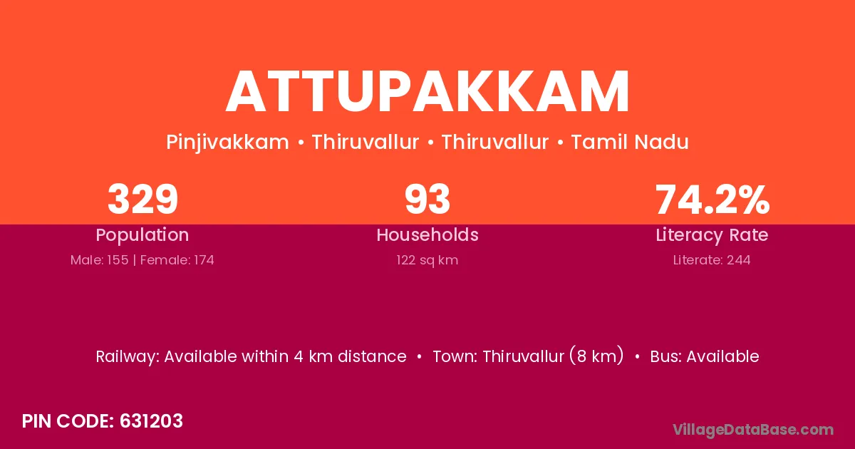 Nemili (4 km) is the nearest town to Attupakkam village for major economic activities and is located approximately 4 km away.