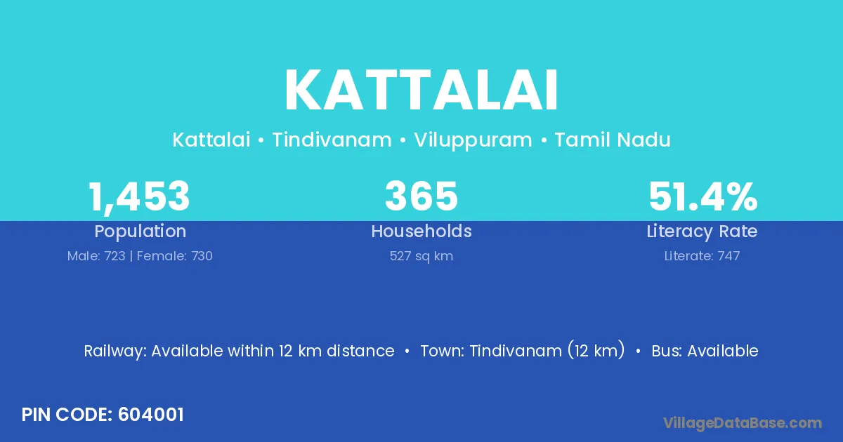 Kaveripakkam (3 km) is the nearest town to Kattalai village for major economic activities and is located approximately 3 km away.