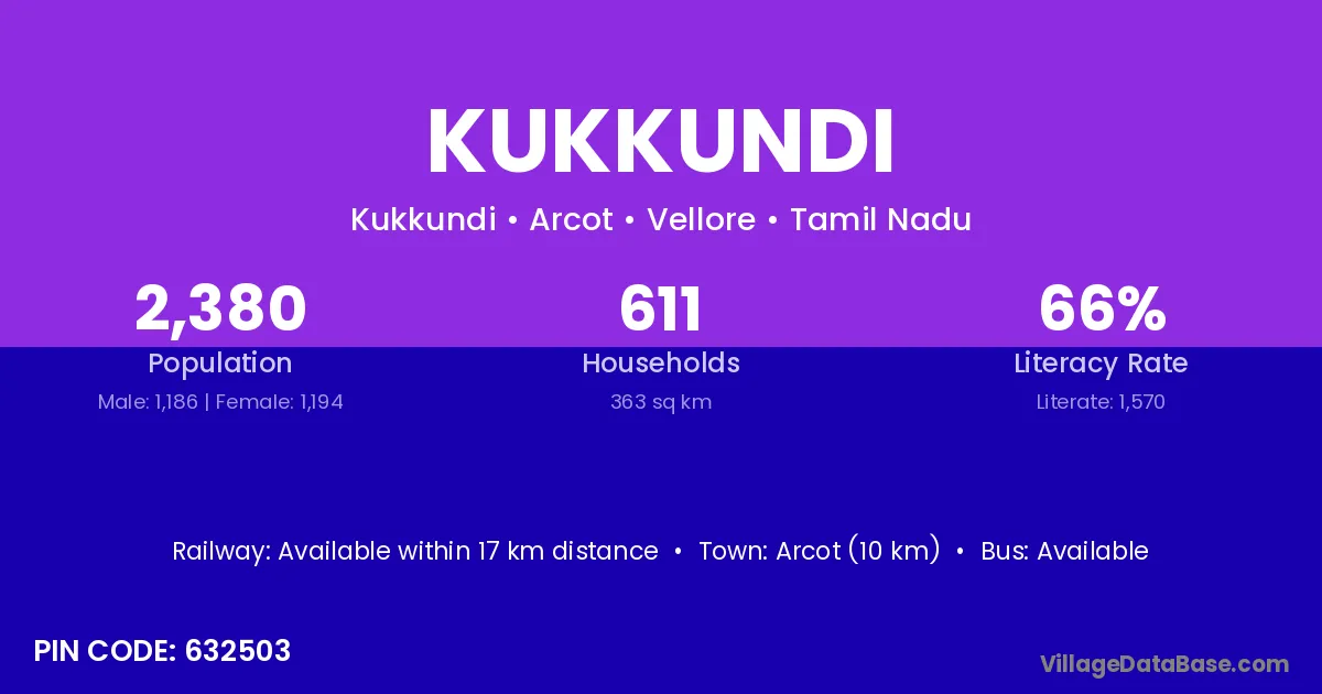 Arcot (10 km) is the nearest town to Kukkundi village for major economic activities and is located approximately 10 km away.