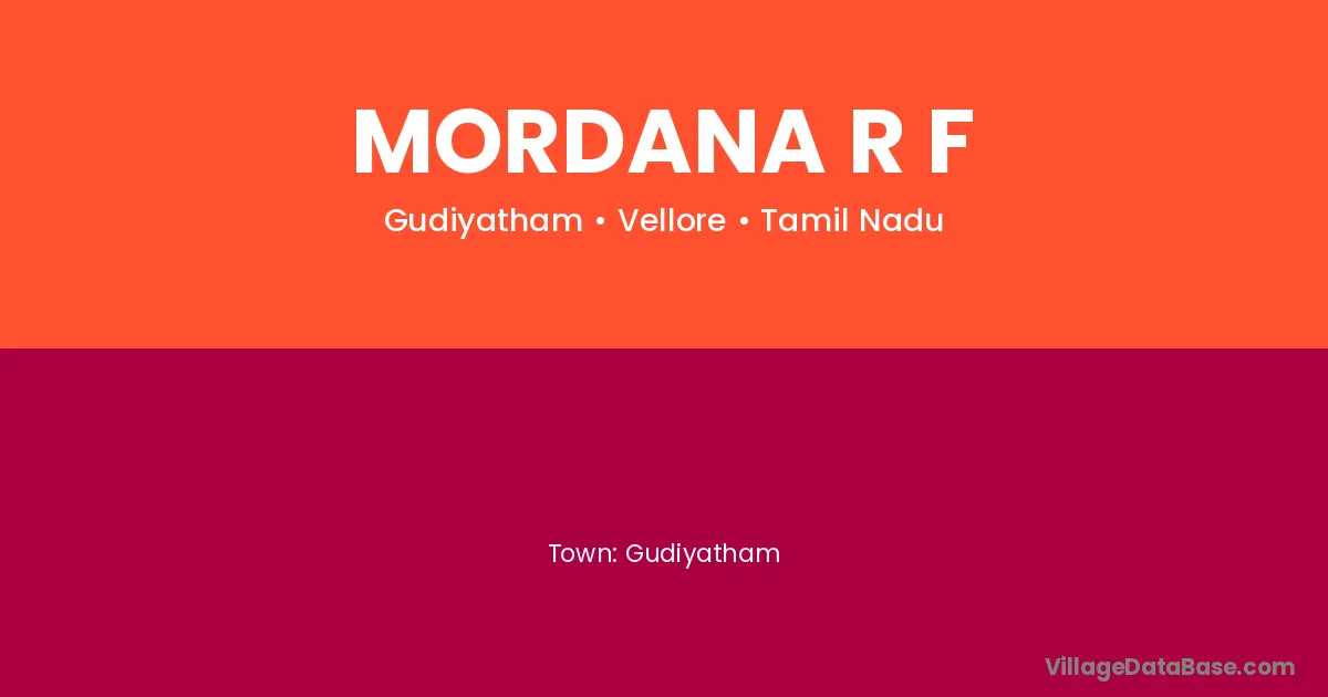 Gudiyatham is the nearest town to Mordana R F village for major economic activities
