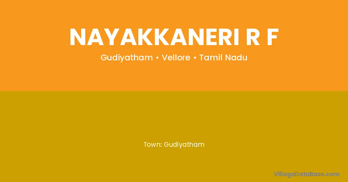 Nayakkaneri R F village is located in the Gudiyatham Taluka of the Vellore district in Tamil Nadu .