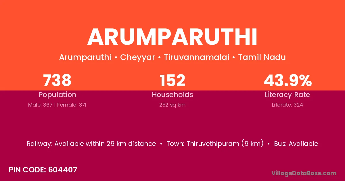 Katpadi (6 km) is the nearest town to Arumparuthi village for major economic activities and is located approximately 6 km away.