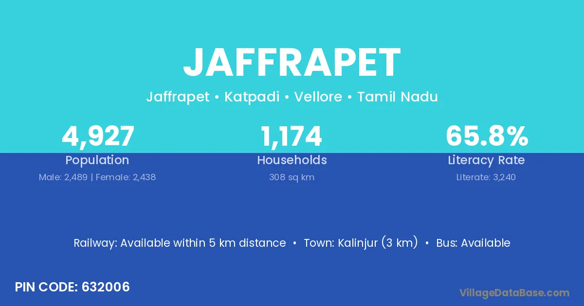 According to Census 2011 information, the village code of Jaffrapet village is 632006.