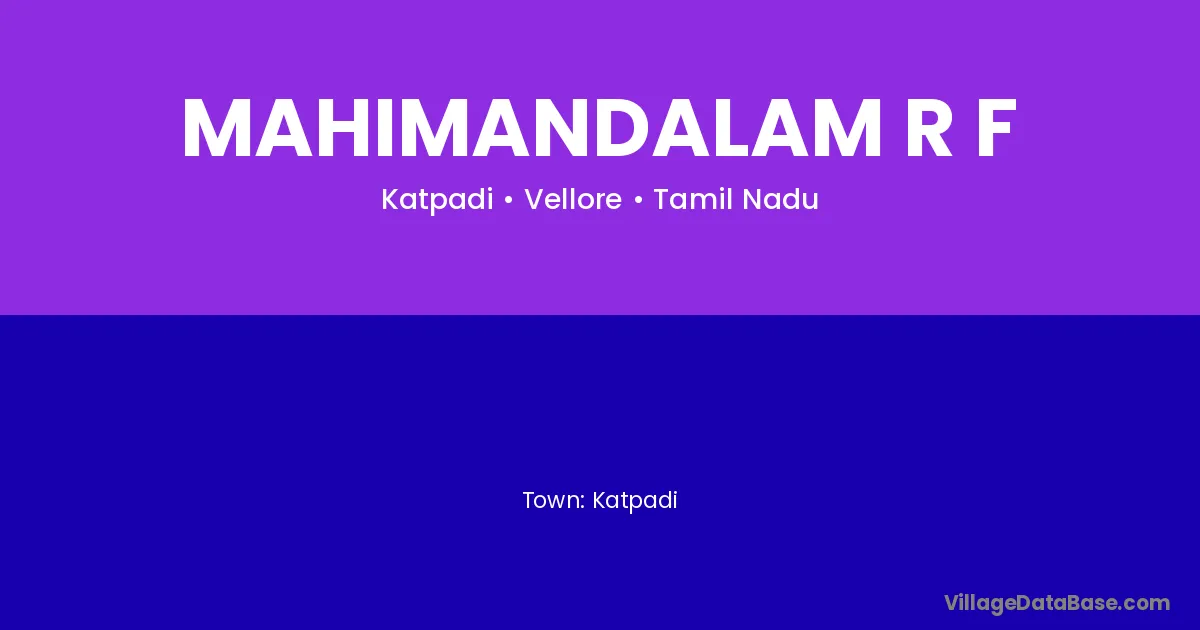 Mahimandalam R F village is located in the Katpadi Taluka of the Vellore district in Tamil Nadu .