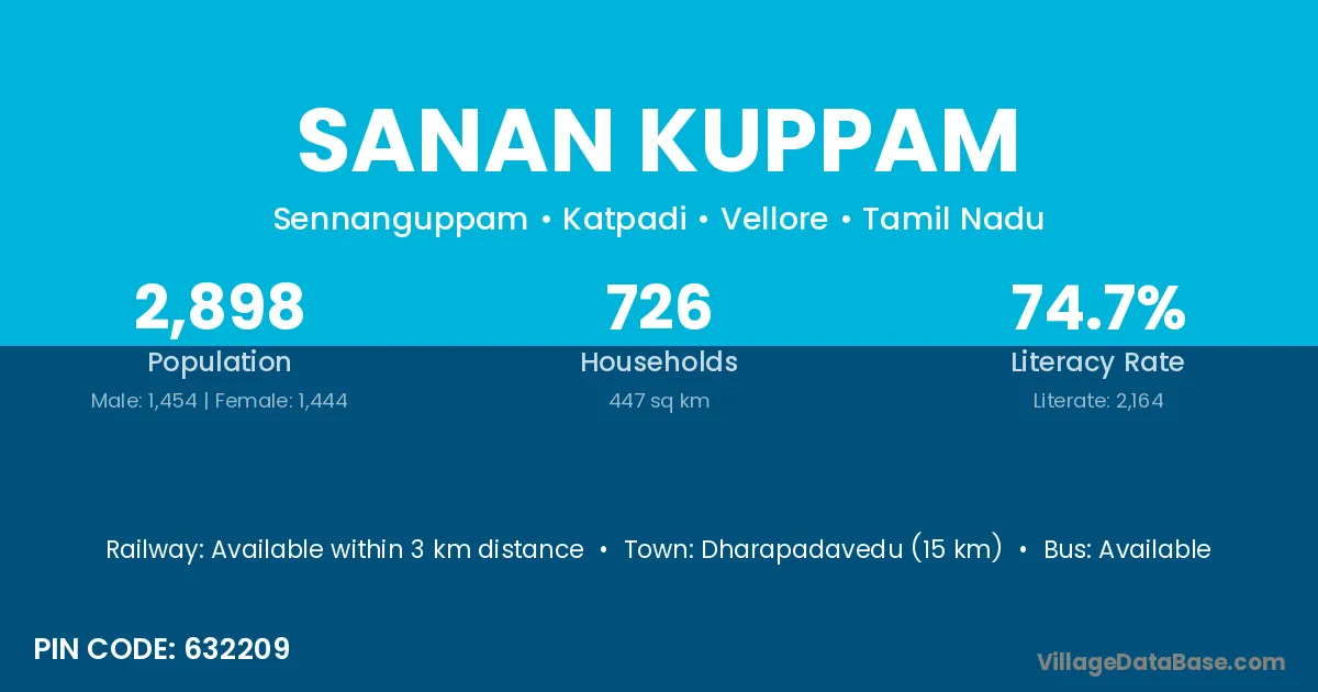Dharapadavedu (15 km) is the nearest town to Sanan Kuppam village for major economic activities and is located approximately 15 km away.