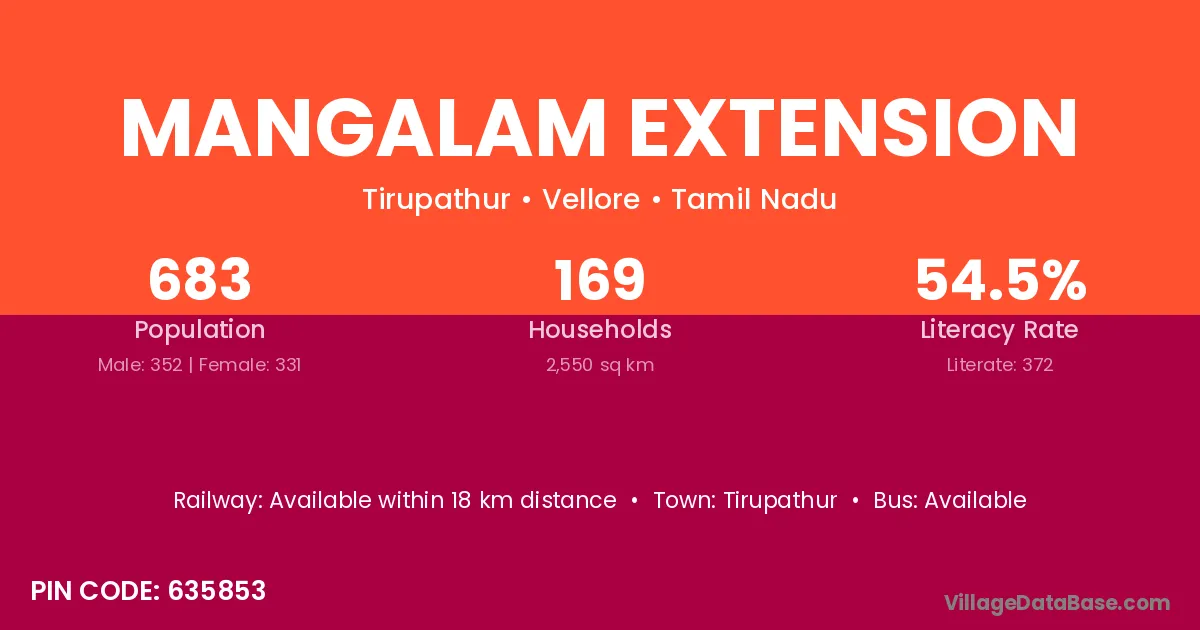 Mangalam Extension village is located in the Tirupathur Taluka of the Vellore district in Tamil Nadu .