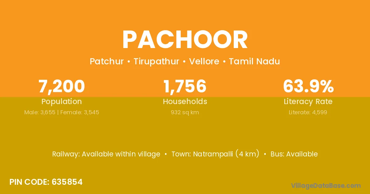 Natrampalli (4 km) is the nearest town to Pachoor village for major economic activities and is located approximately 4 km away.