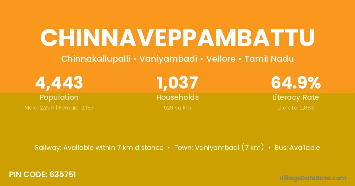 Vaniyambadi (7 km) is the nearest town to Chinnaveppambattu village for major economic activities and is located approximately 7 km away.