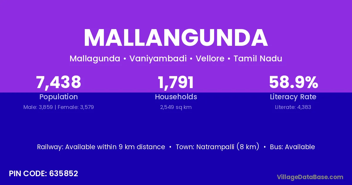 Natrampalli (8 km) is the nearest town to Mallangunda village for major economic activities and is located approximately 8 km away.
