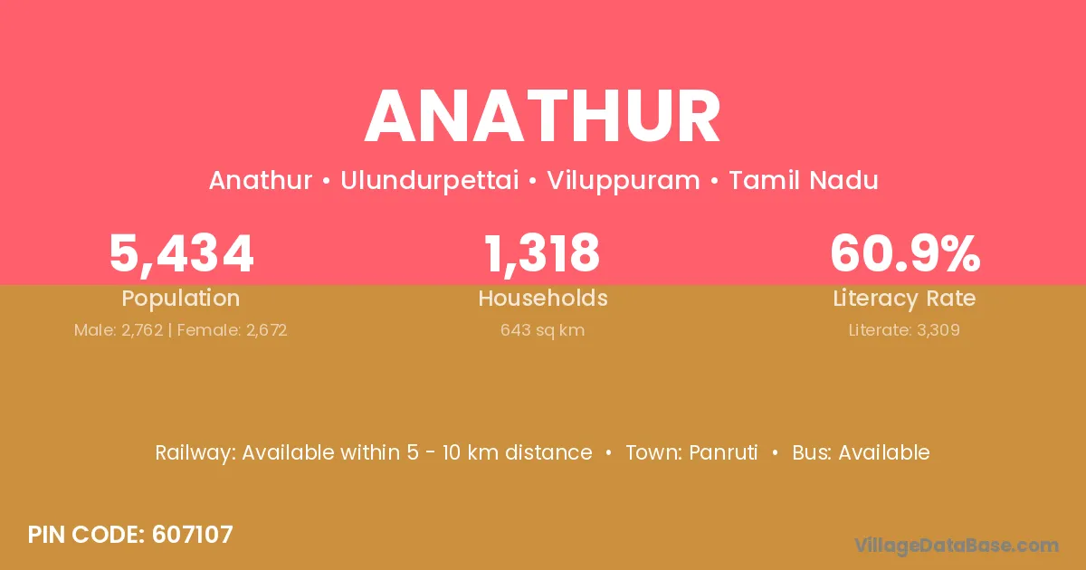 According to Census 2011 information, the village code of Anathur village is 604202.