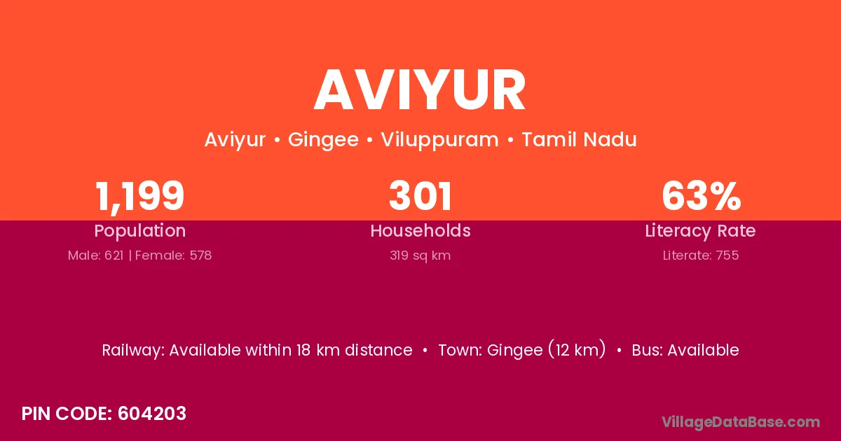 Gingee (12 km) is the nearest town to Aviyur village for major economic activities and is located approximately 12 km away.