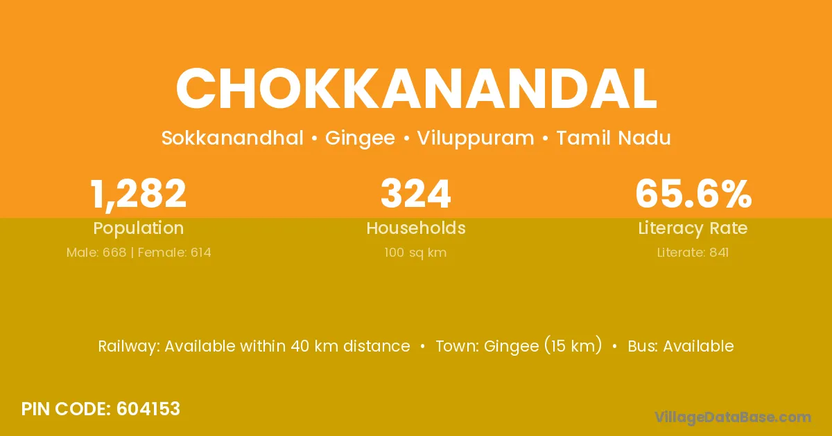 Gingee (15 km) is the nearest town to Chokkanandal village for major economic activities and is located approximately 15 km away.