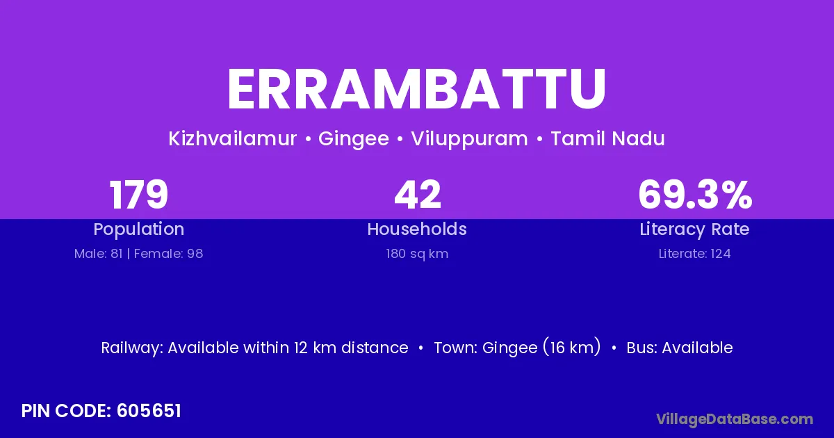 Gingee (16 km) is the nearest town to Errambattu village for major economic activities and is located approximately 16 km away.