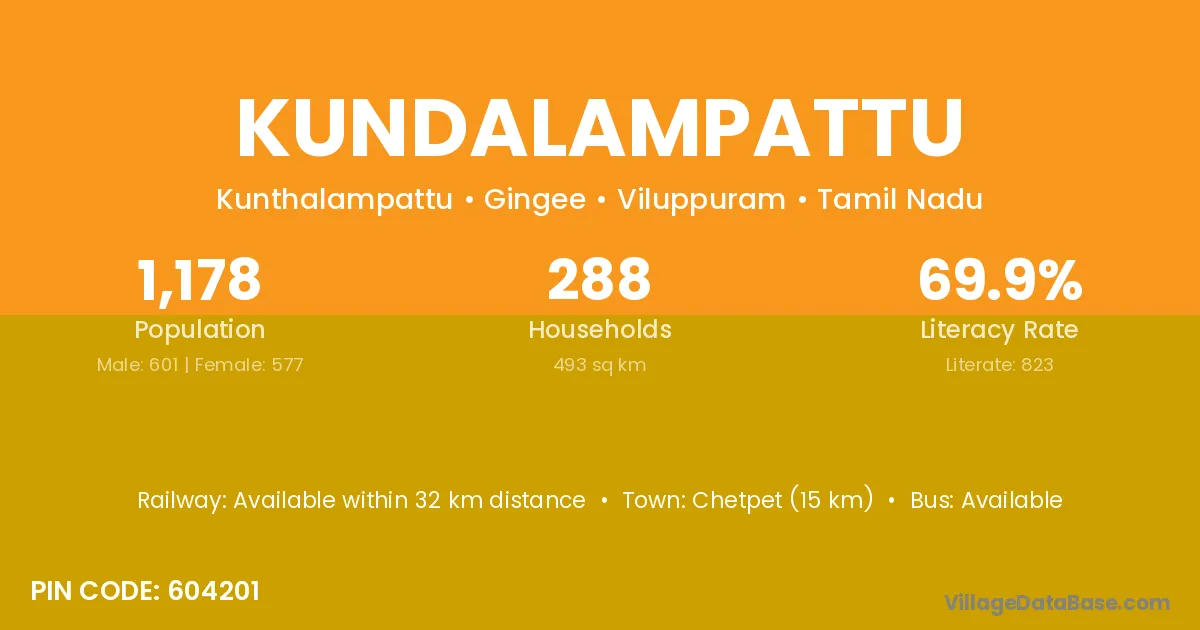 According to Census 2011 information, the village code of Kundalampattu village is 604201.