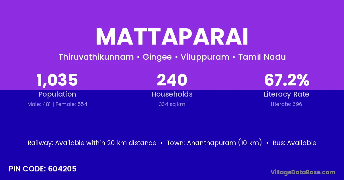 According to Census 2011 information, the village code of Mattaparai village is 604205.