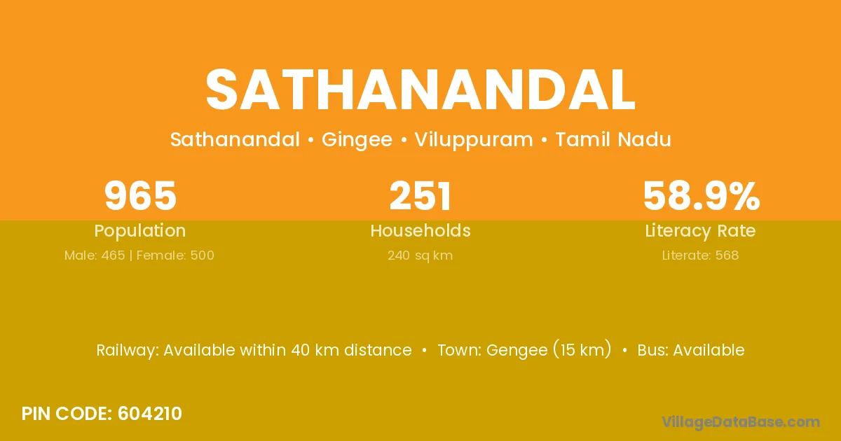 Sathanandal village has a total population of 965 people, of which 465 are males and 500 are females.