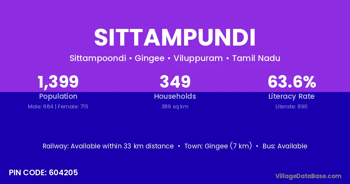 Sittampundi village has a total population of 1,399 people, of which 684 are males and 715 are females.