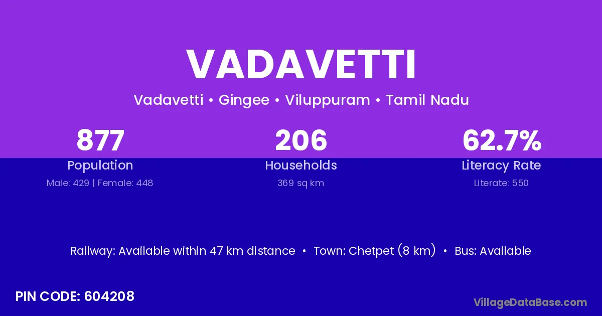 According to Census 2011 information, the village code of Vadavetti village is 604208.