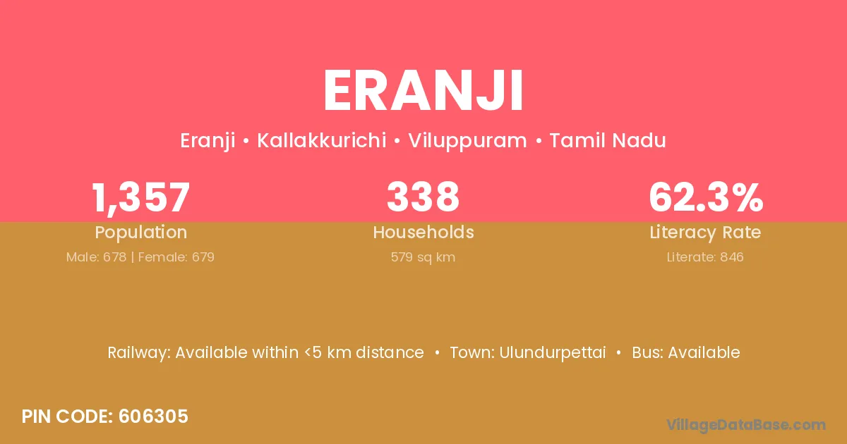 Ulundurpettai is the nearest town to Eranji village for major economic activities