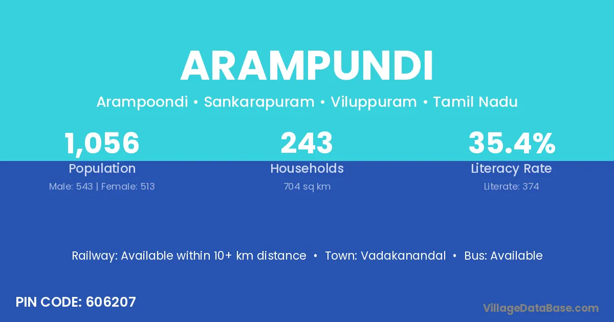 Arampundi village has a total population of 1,056 people, of which 543 are males and 513 are females.