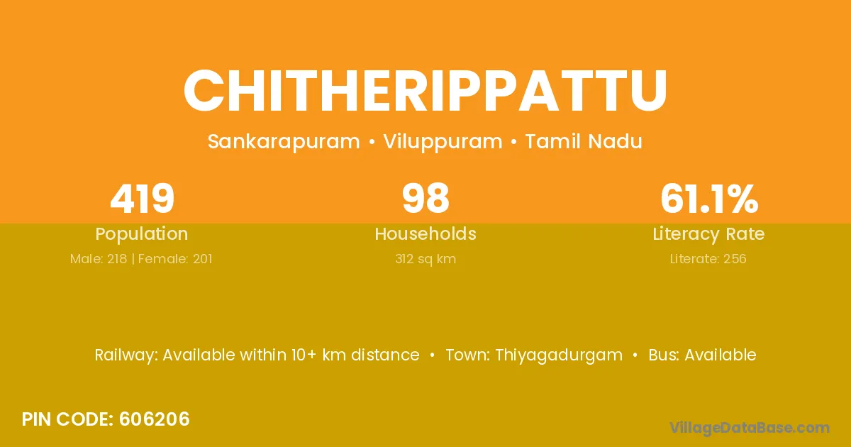 Chitherippattu village has a total population of 419 people, of which 218 are males and 201 are females.