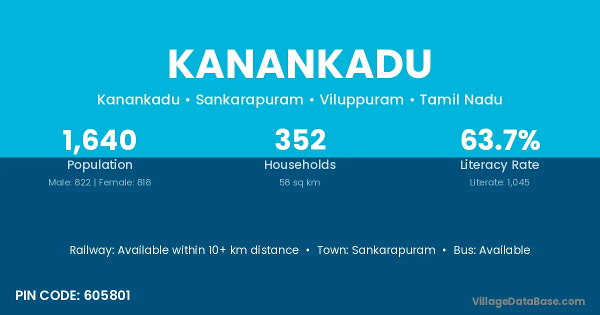 Sankarapuram is the nearest town to Kanankadu village for major economic activities