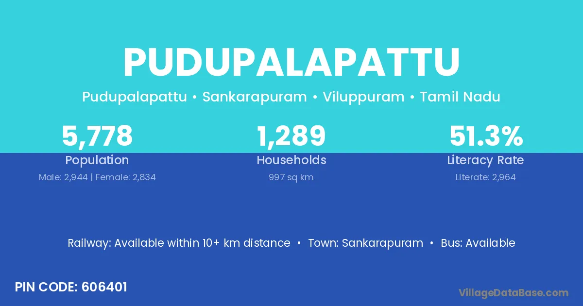 There are approximately 1,289 households in Pudupalapattu village.