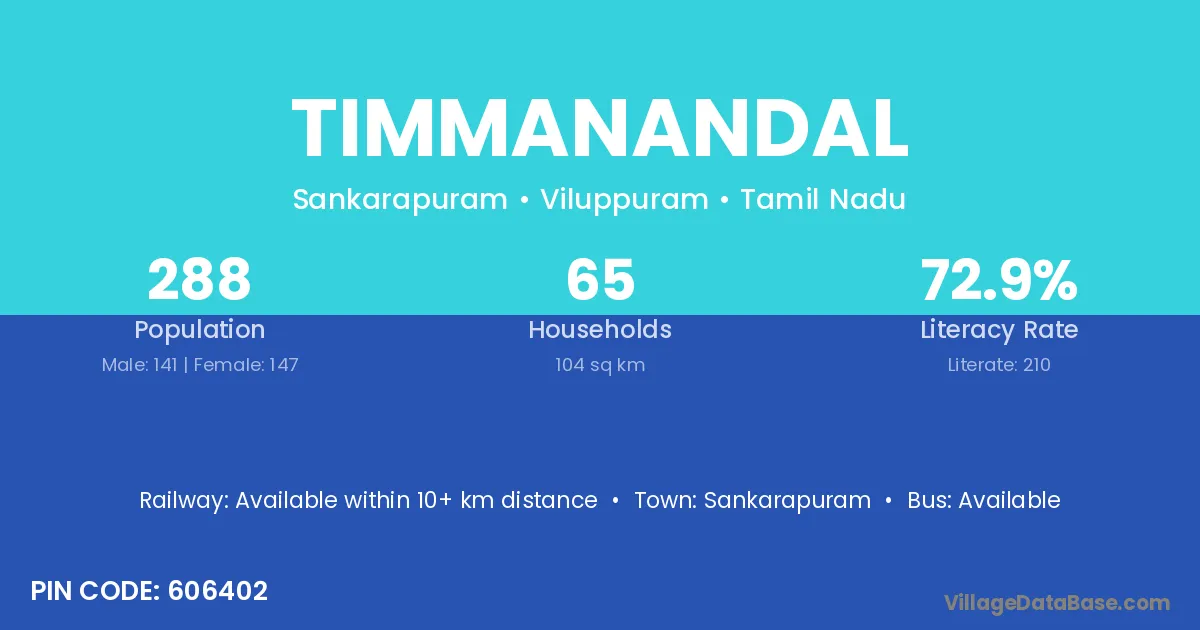 According to Census 2011 information, the village code of Timmanandal village is 606402.