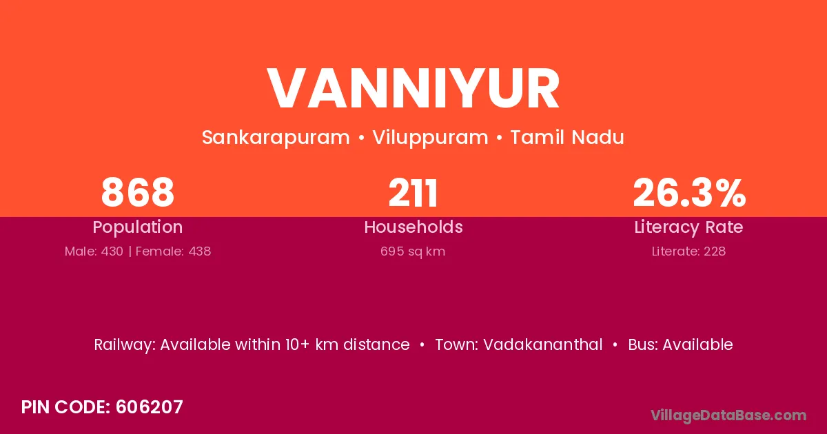 Vanniyur village has a total population of 868 people, of which 430 are males and 438 are females.