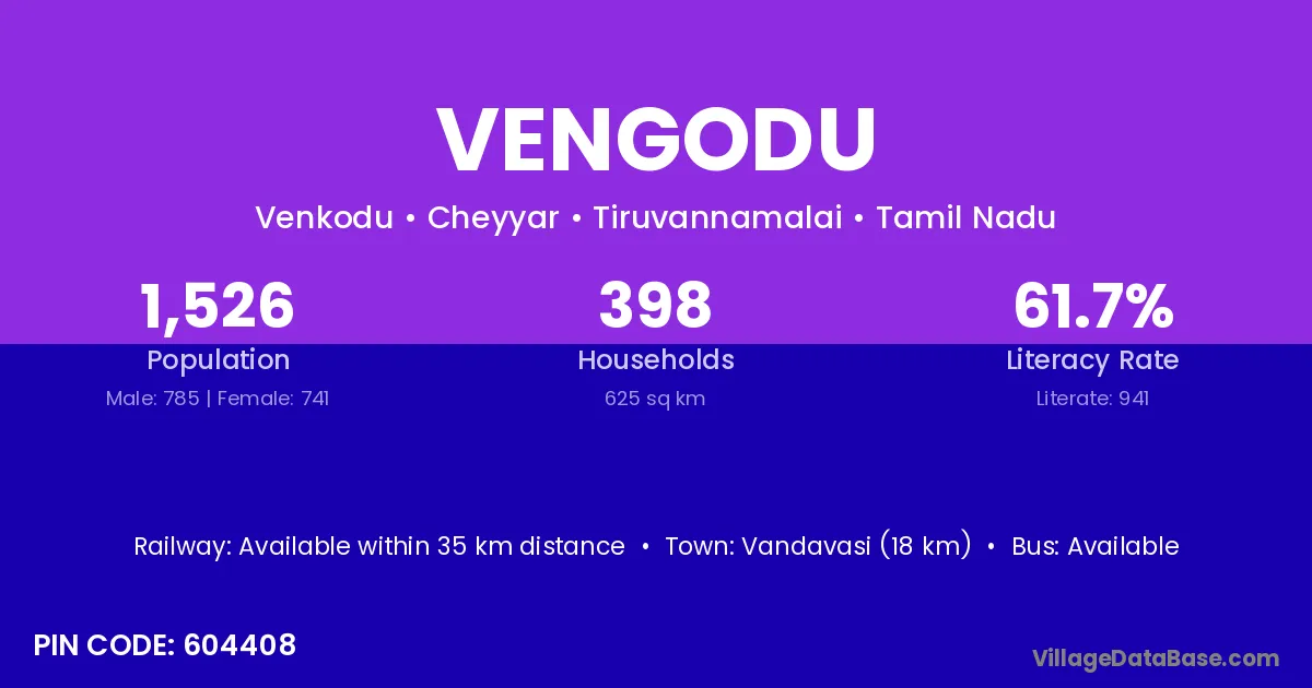 According to Census 2011 information, the village code of Vengodu village is 606401.