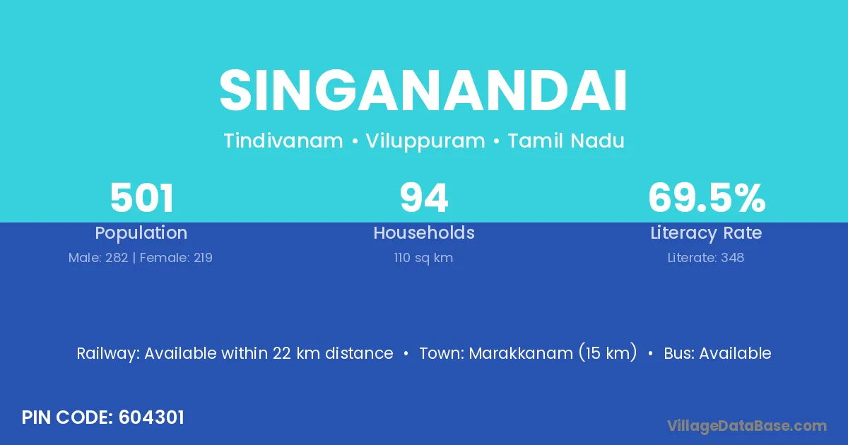 Marakkanam (15 km) is the nearest town to Singanandai village for major economic activities and is located approximately 15 km away.