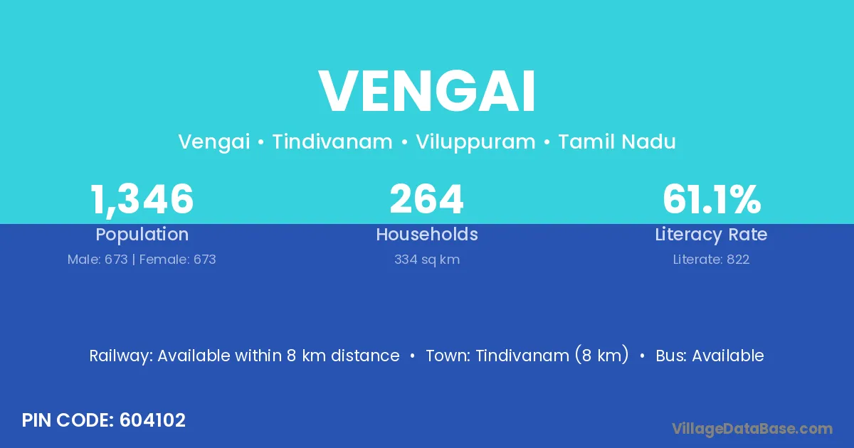 Tindivanam (8 km) is the nearest town to Vengai village for major economic activities and is located approximately 8 km away.