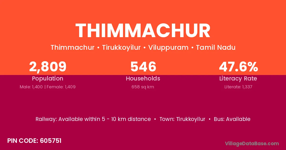 Tirukkoyilur is the nearest town to Thimmachur village for major economic activities