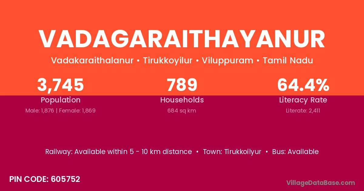 Tirukkoilyur is the nearest town to Vadagaraithayanur village for major economic activities