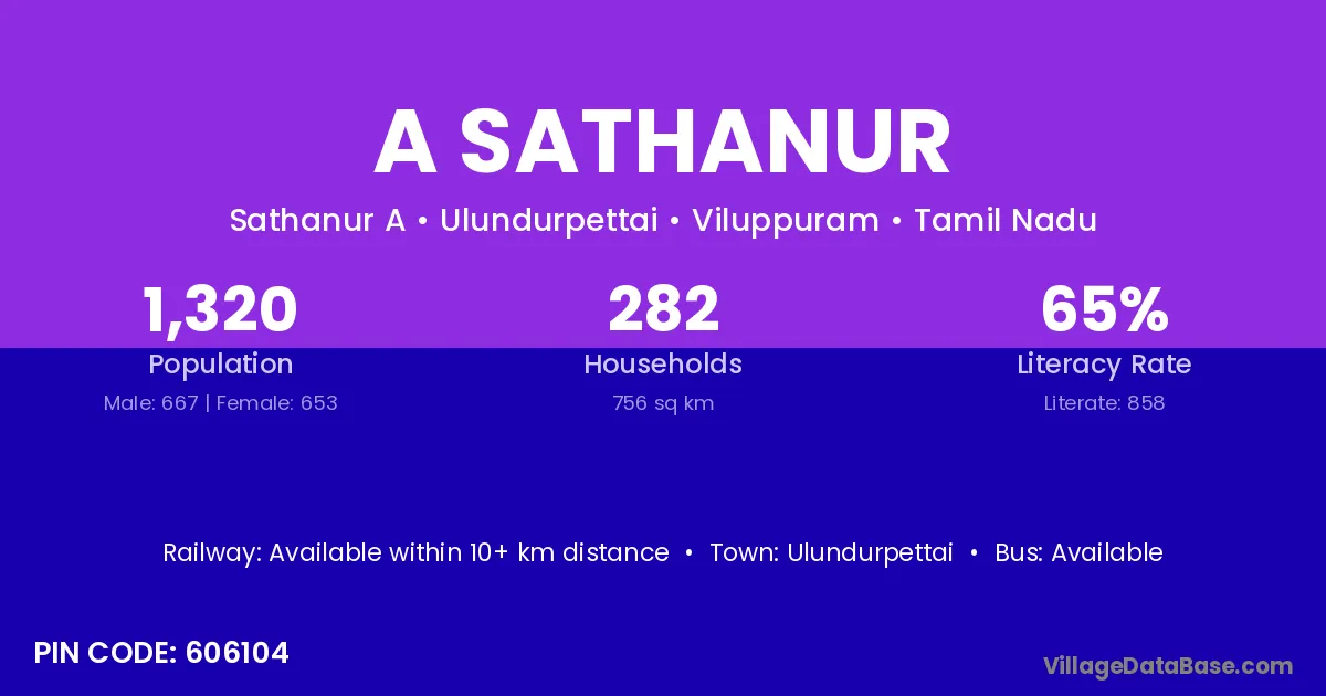 Ulundurpettai is the nearest town to A Sathanur village for major economic activities